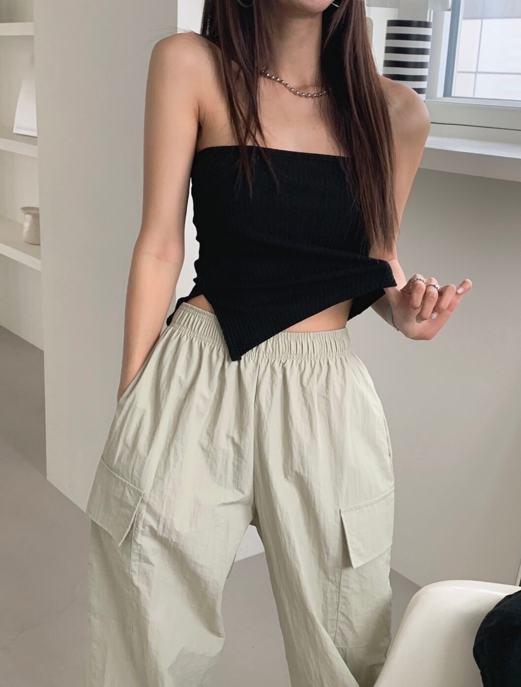 アンバランスリブニットベアトップ 2color